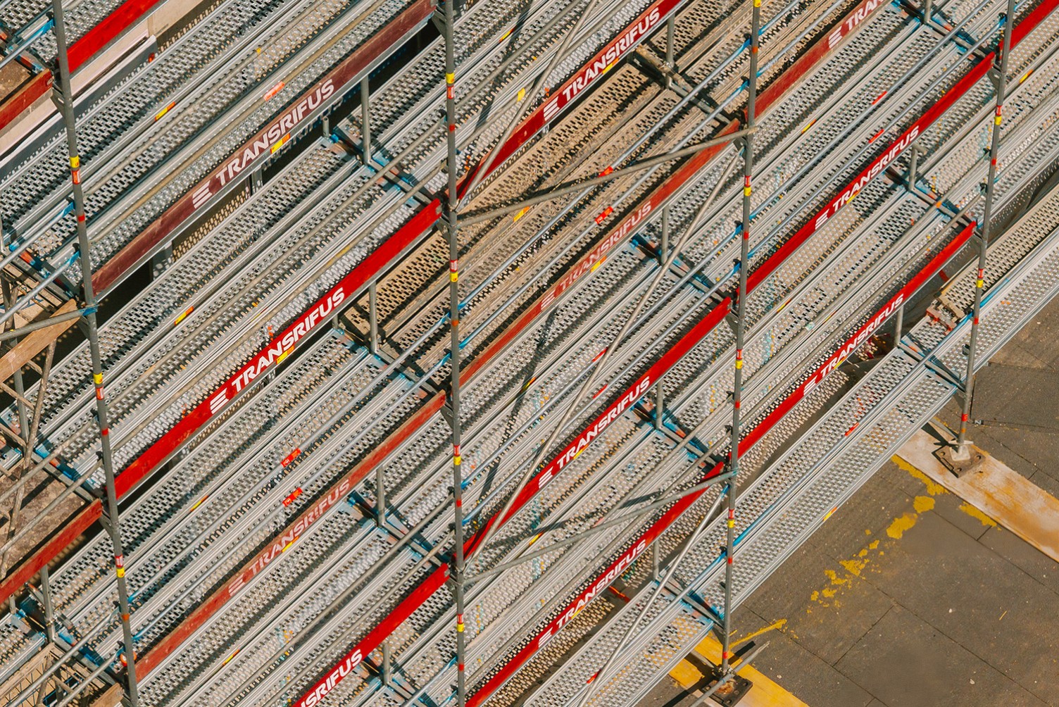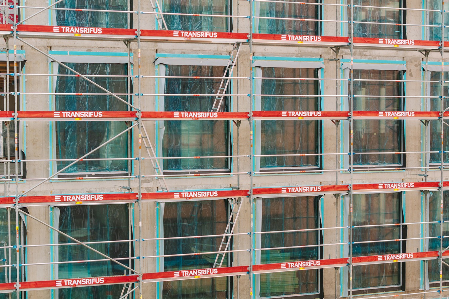 - fasadinių pastolių konstrukciją, kuri padengė didelį pastato plotą;