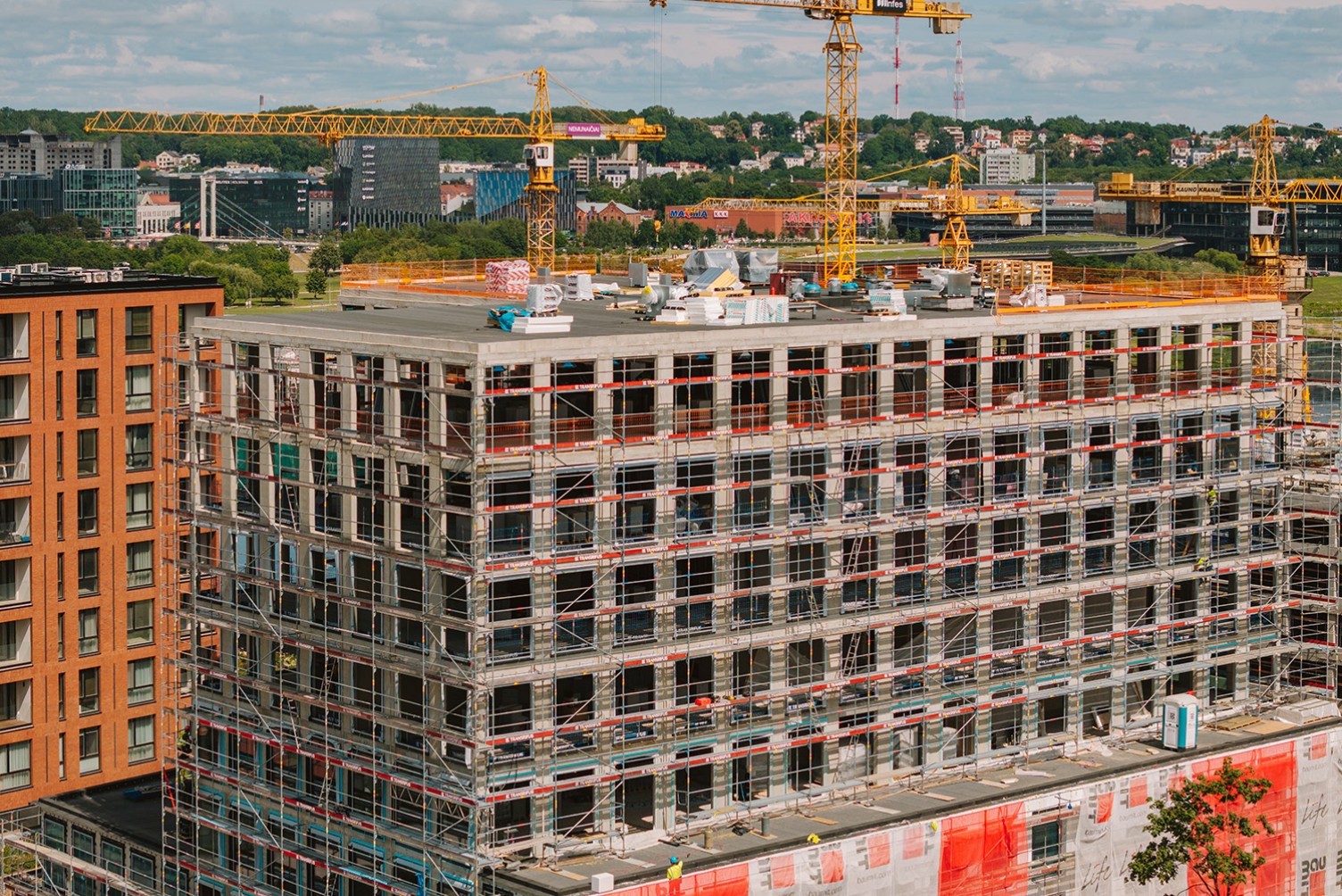 Viename didžiausių šiuo metu Kaune vystomų projektų „Nemunaičiai“ klientui buvo reikalingas patikimas partneris, galintis užtikrinti didelio masto fasadinių pastolių suprojektavimą, nuomą ir įrengimą per itin trumpą laiką. Pagrindinis poreikis – sumontuoti beveik 7000 m² fasadinių pastolių. Tai vienas didžiausių TRANSRIFUS fasadinių pastolių projektų. Pirmame šio kvartalo statybos etape buvome sumontavę apie 10.000 m² pastolių.