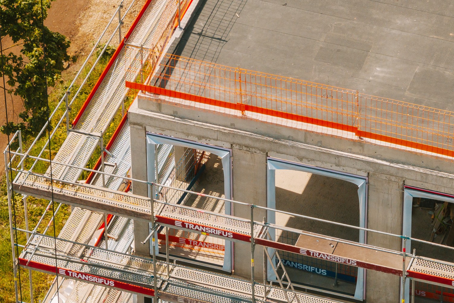 Projektui buvo parinkta universali ir patikima fasadinių pastolių sistema, leidžianti greitai prisitaikyti prie objekto specifikos.