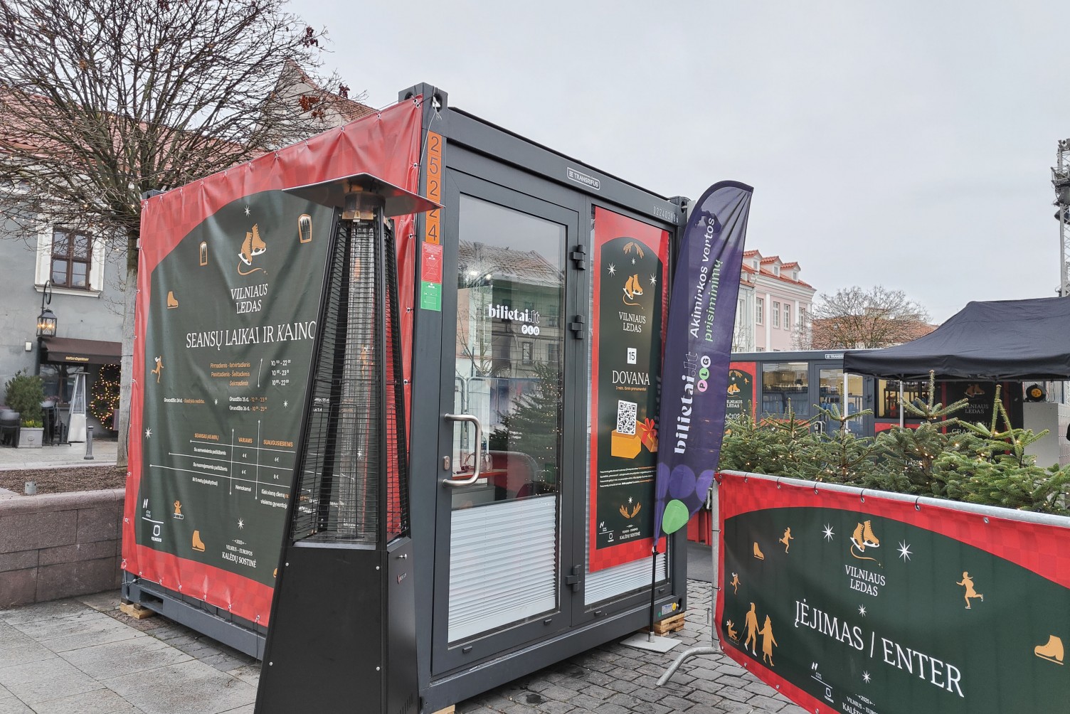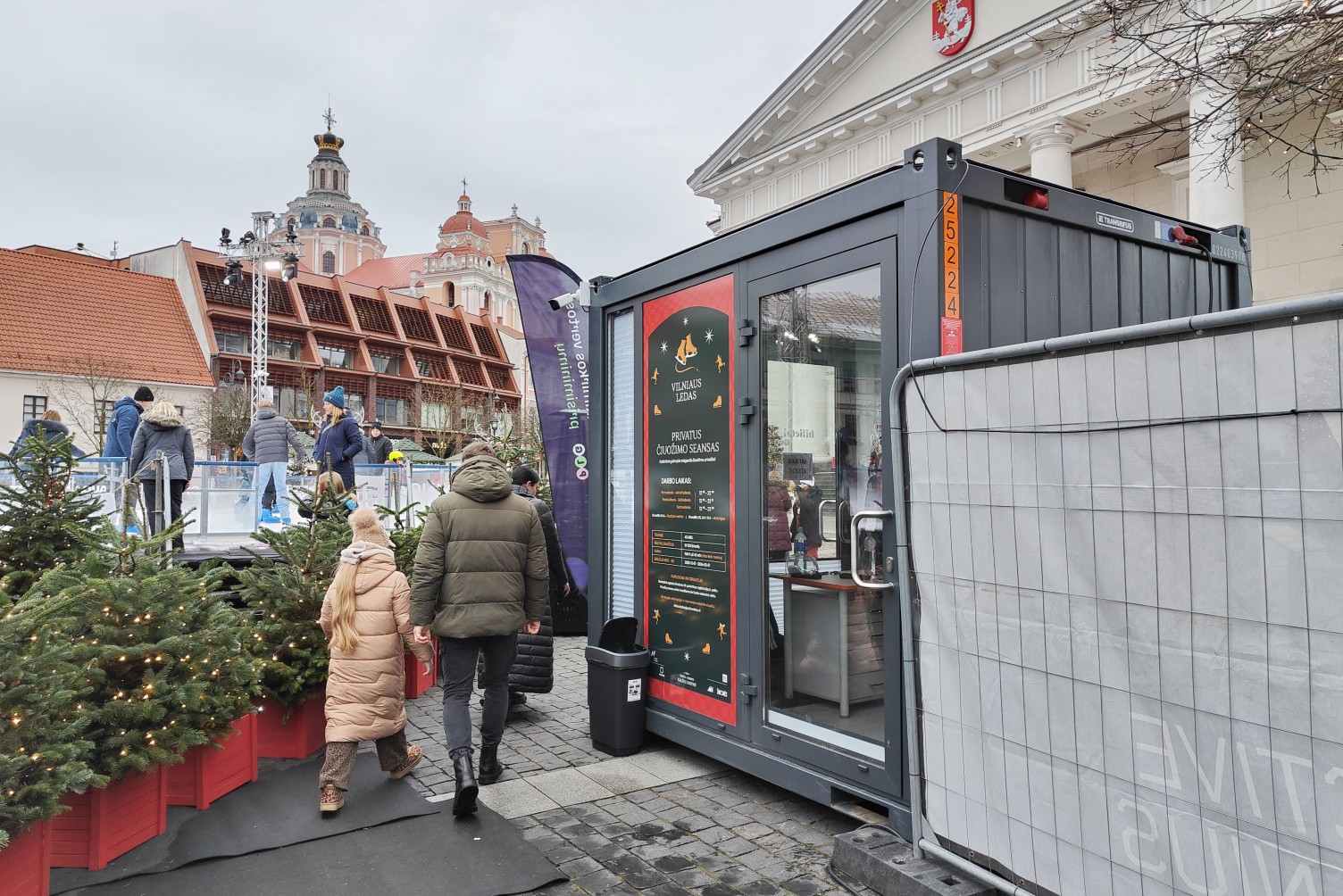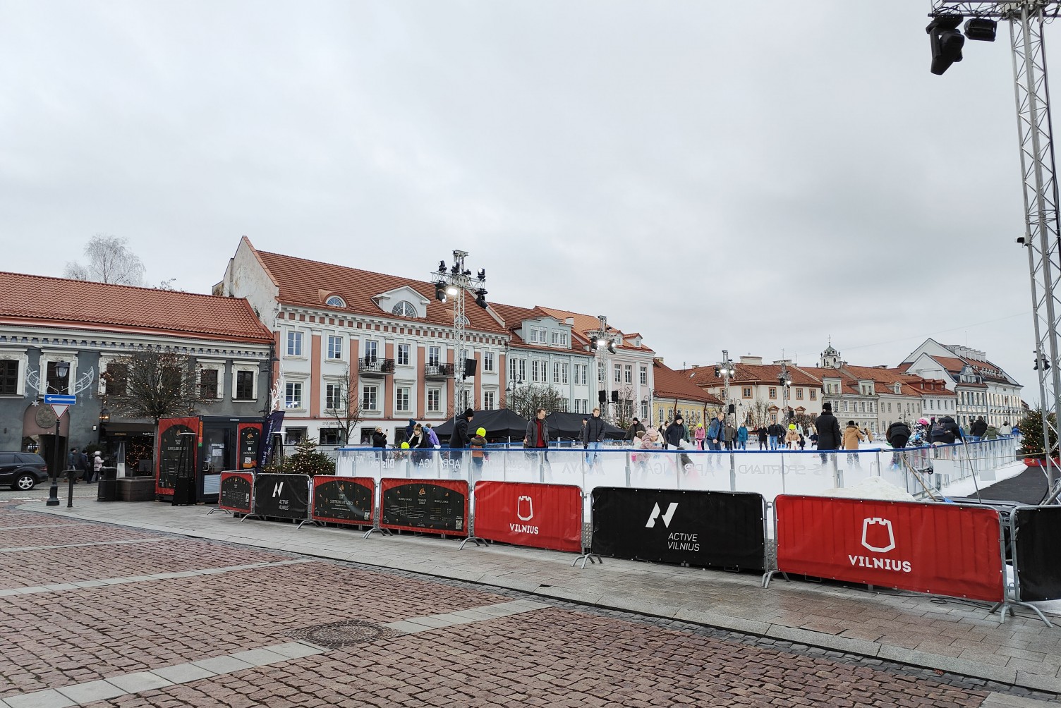 Kadangi ledo čiuožykla buvo įrenginėjama senamiestyje, papildomai derinome leidimus sunkiojo transporto įvažiavimui į Rotušės aikštę.