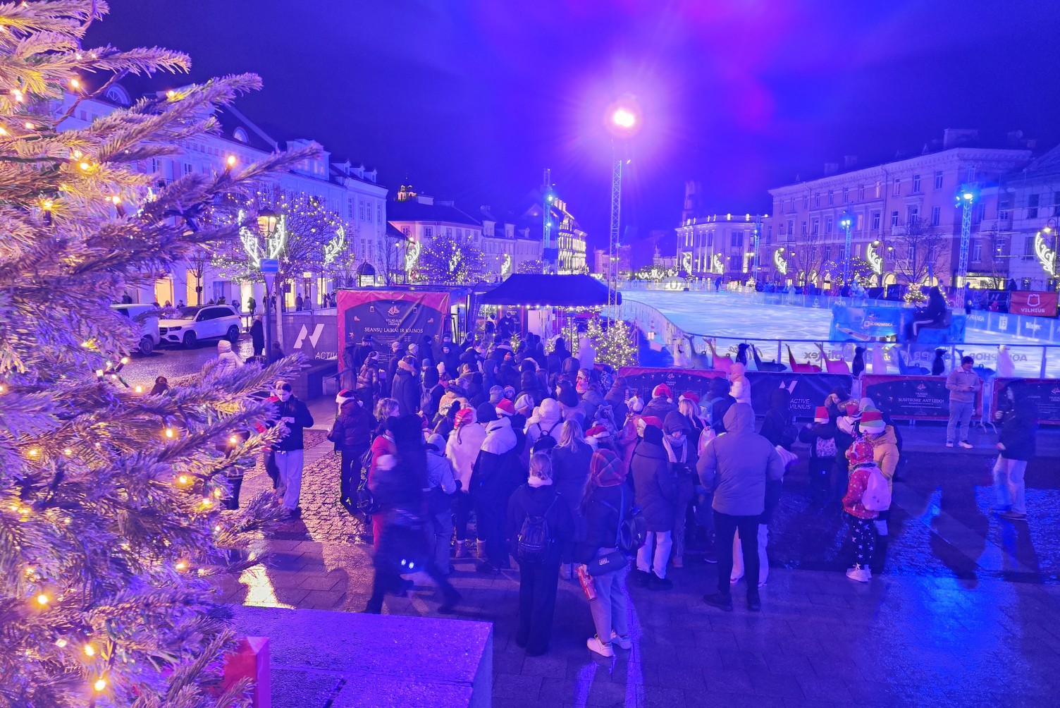Vilniaus Rotušės aikštėje įkurta laikina ledo čiuožykla po atviru dangumi.
