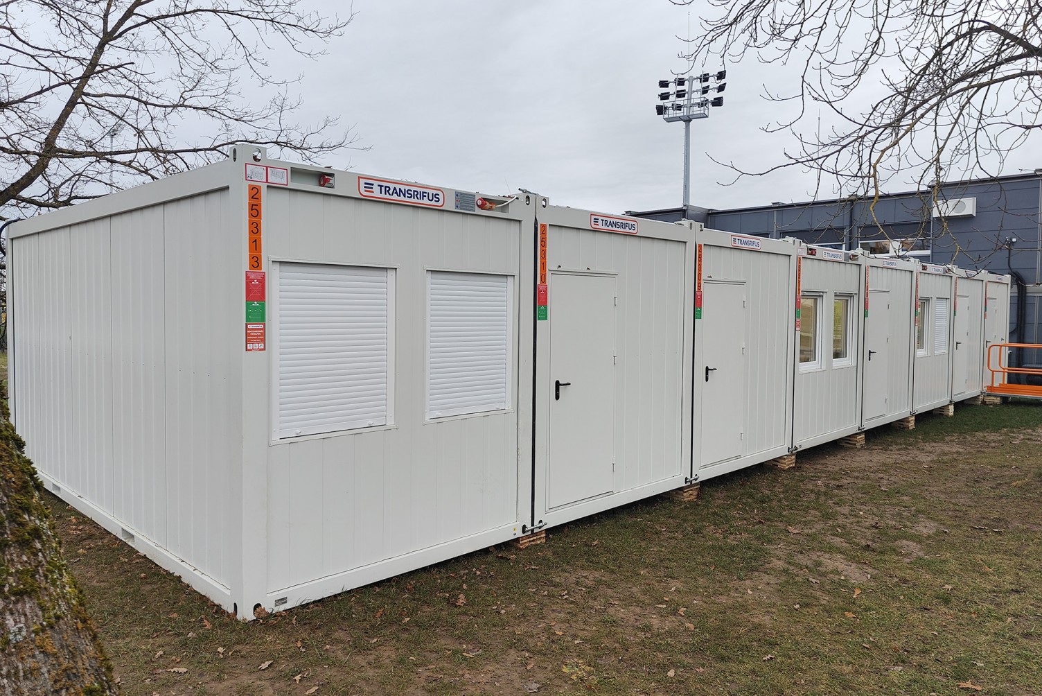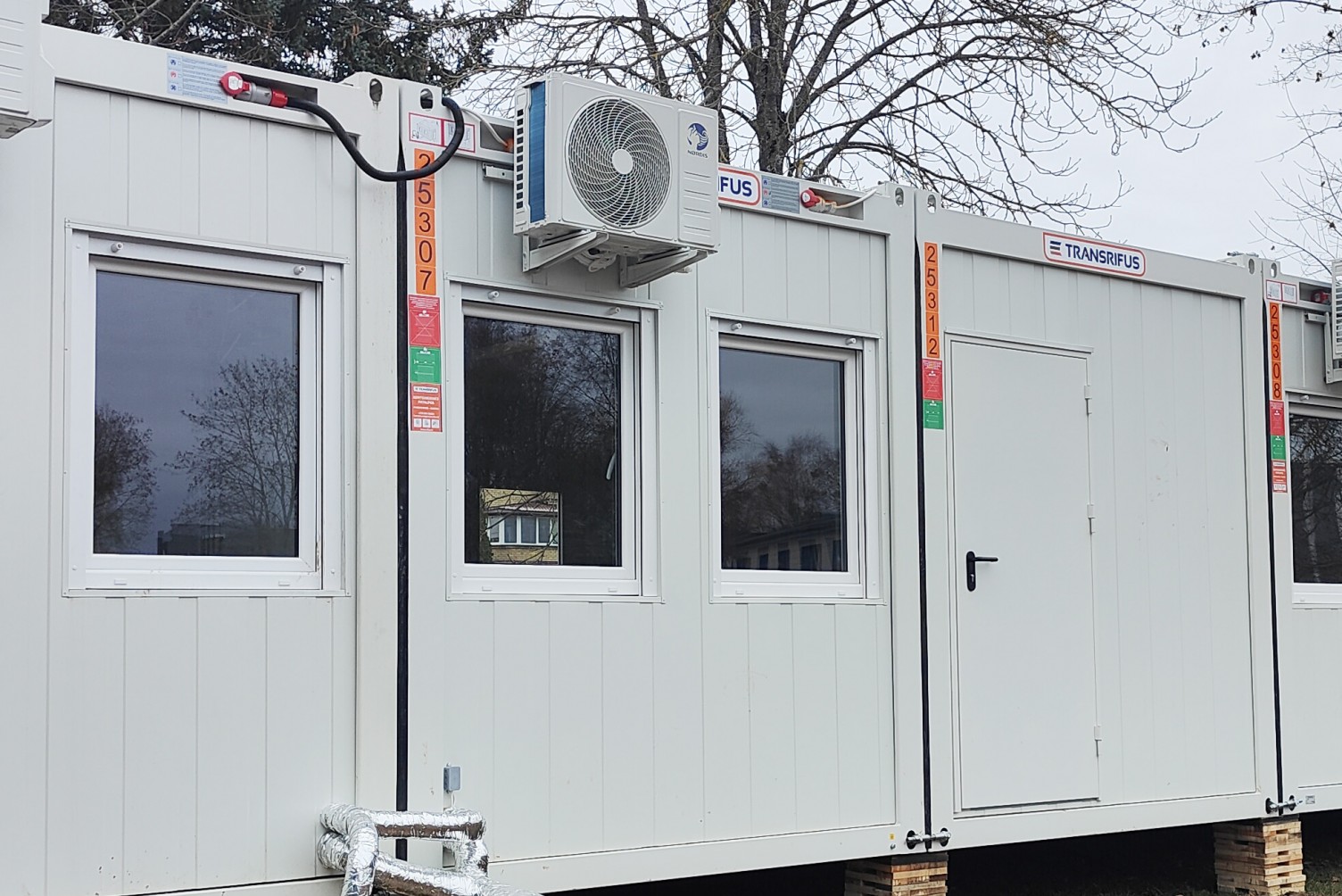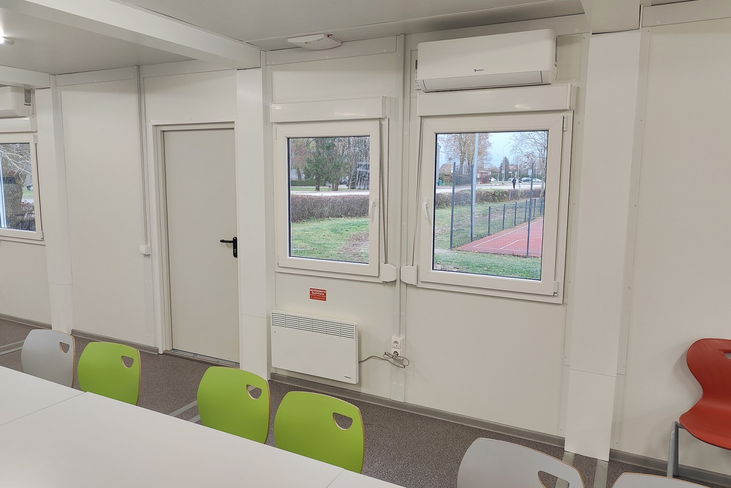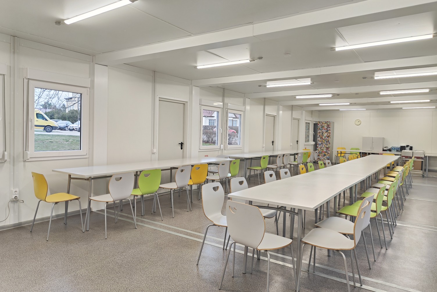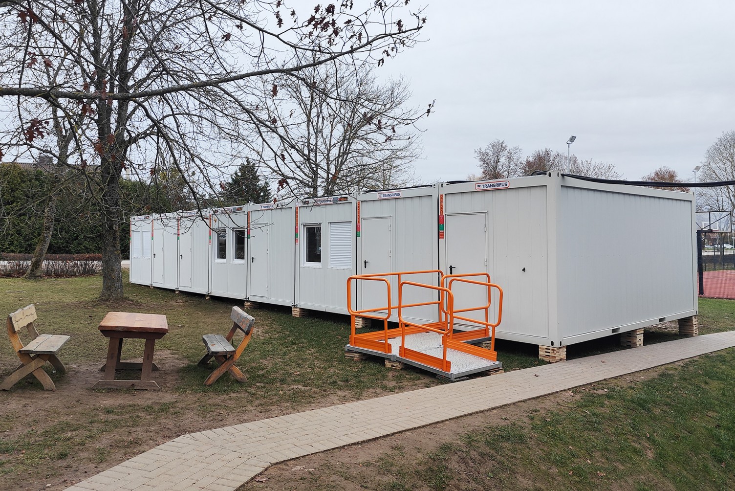 Atsižvelgiant į kliento poreikius, buvo suprojektuotas ir įrengtas 8 konteinerių kompleksas, pritaikytas mokinių valgyklos funkcijai. Sujungus patalpas, atsivėrė erdvi valgomojo zona, o šalia įėjimo buvo įrengta atskira vieta rankoms plauti. Siekiant užtikrinti patogų patekimą visiems naudotojams, sumontuotas užvažiavimo pandusas.