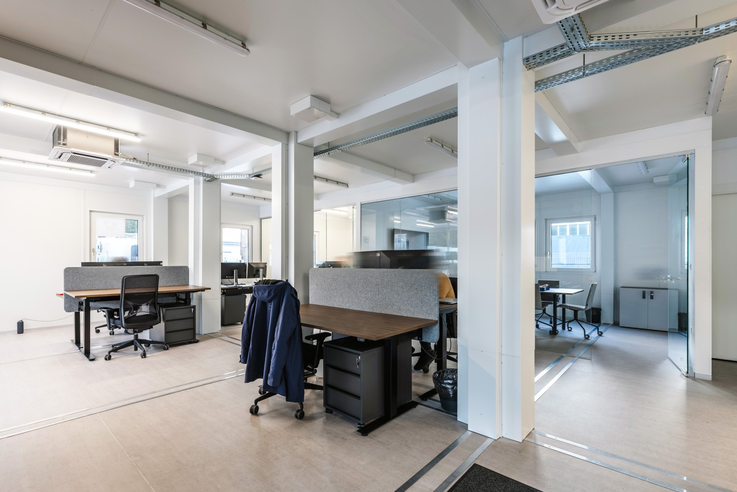 - Erdvė ir patogumas. 2,7 metrų aukščio lubos suteikia darbuotojams jausmą didesnės erdvės, gerinant bendravimą ir darbo efektyvumą.