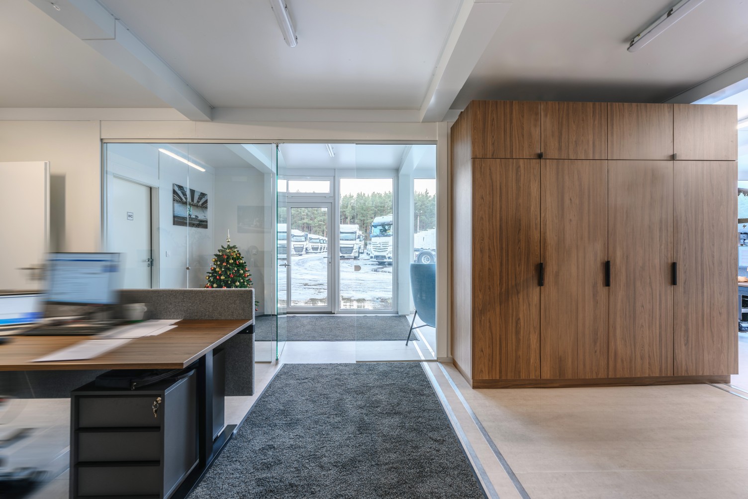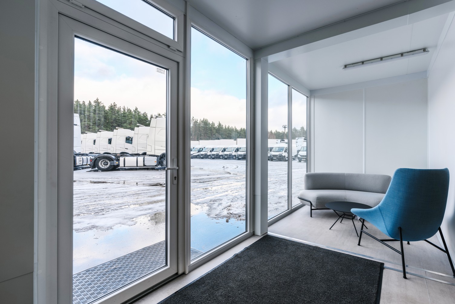 Mūsų klientas, autotransporto prekybos įmonė, susidūrė su iššūkiu – reikėjo įkurti patalpas visiems darbuotojams netoli prekybos aikštelės. Esami pastatai netenkino visų darbuotojų poreikio.