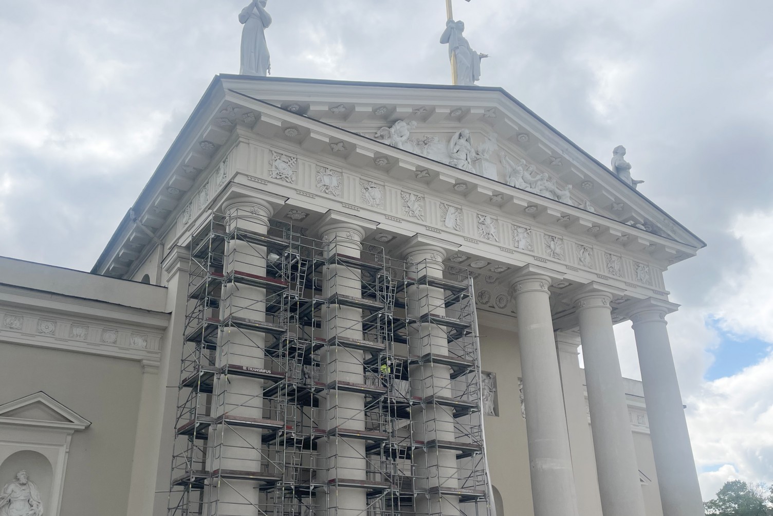 Pastolių suprojektavimas ir įrengimas aplink katedros kolonas bei varpinės bokštą, siekiant patogiai ir saugiai atlikti dažymo bei skardinimo darbus.