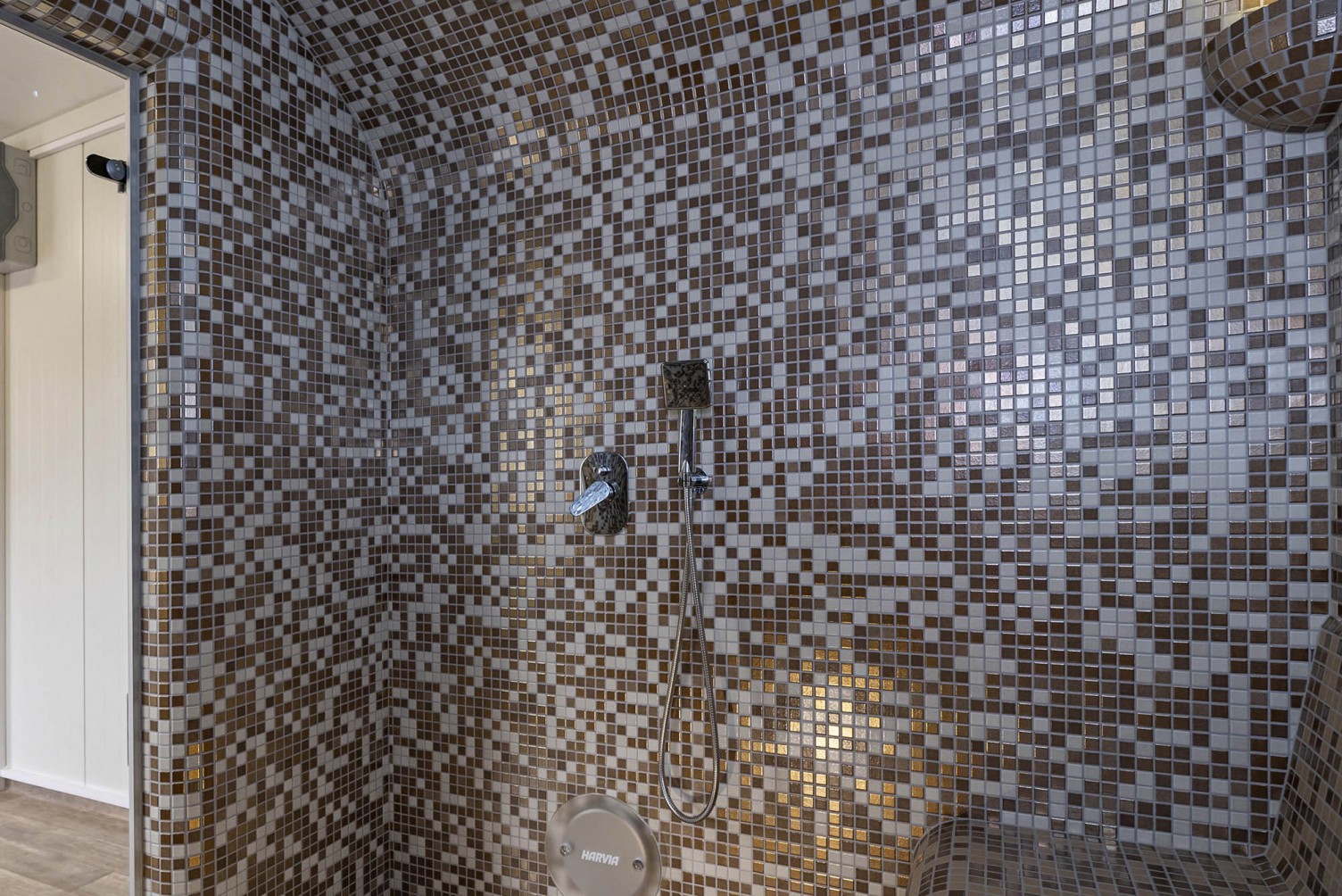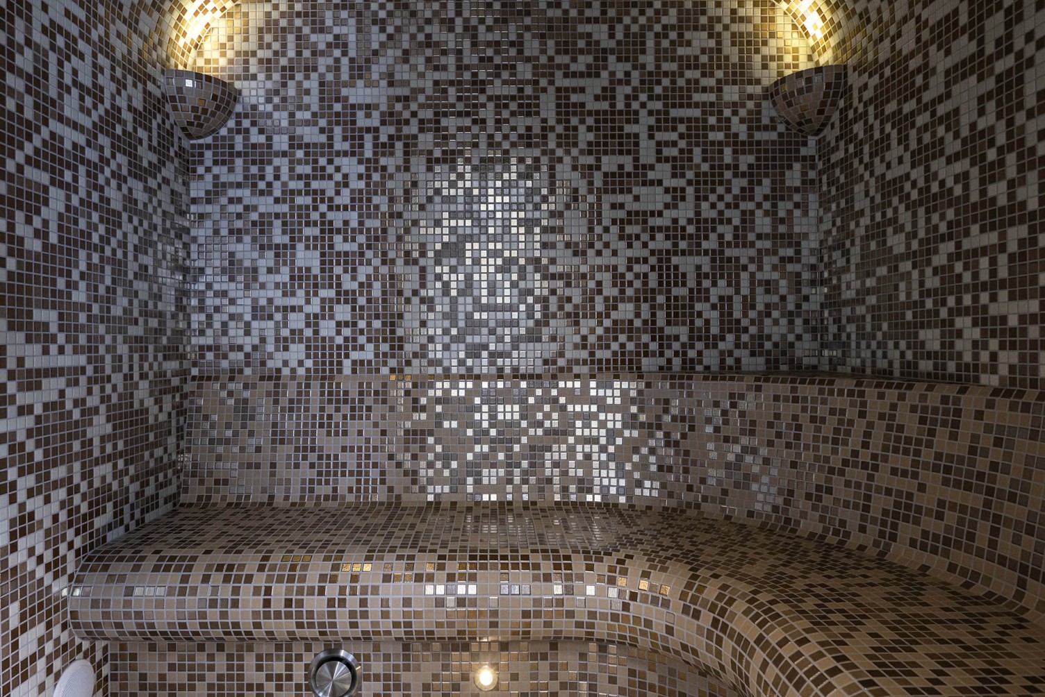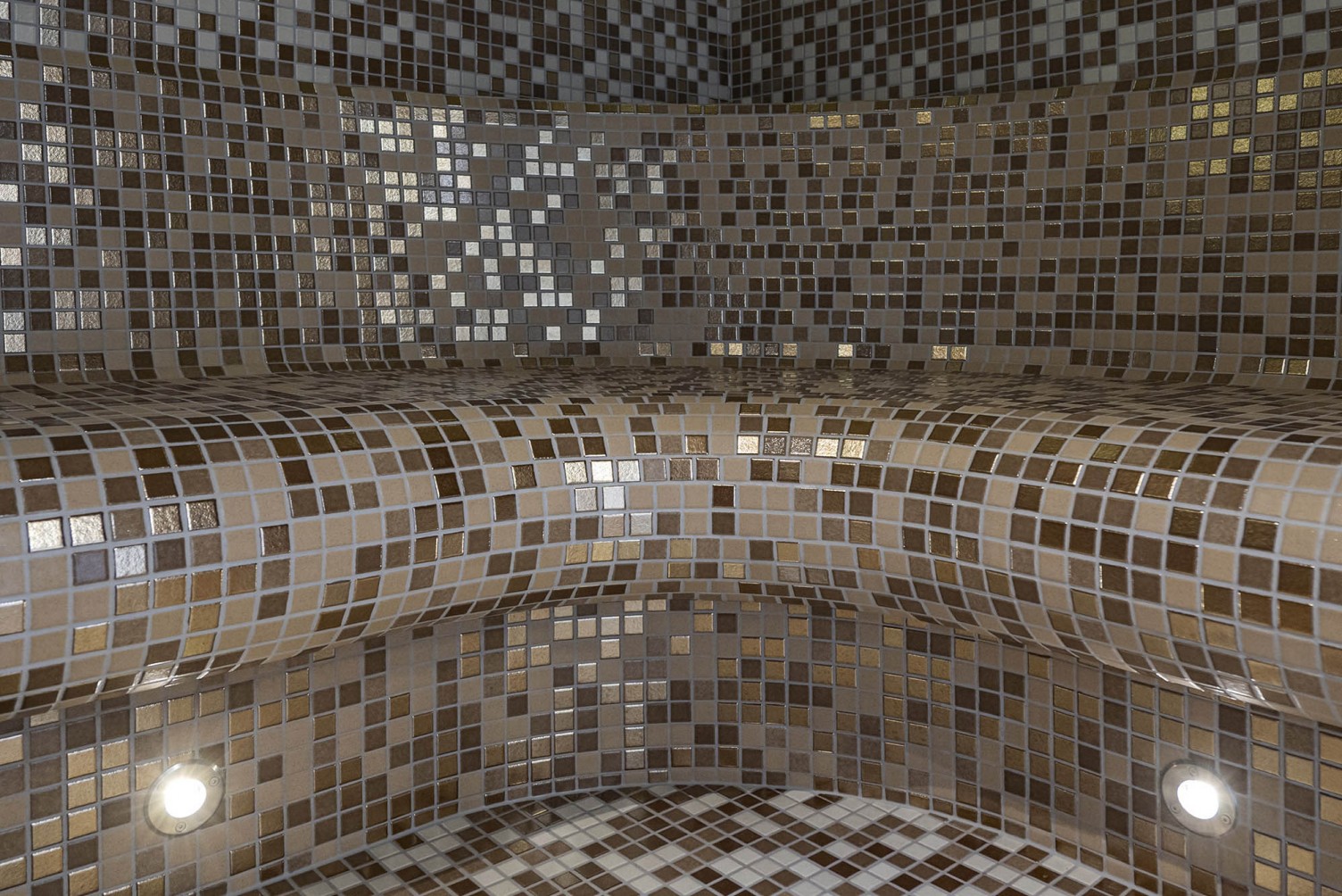 Įrengta pirties patalpa su skliautais. Paviršius išklijuotas mozaikinėmis plytelėmis.