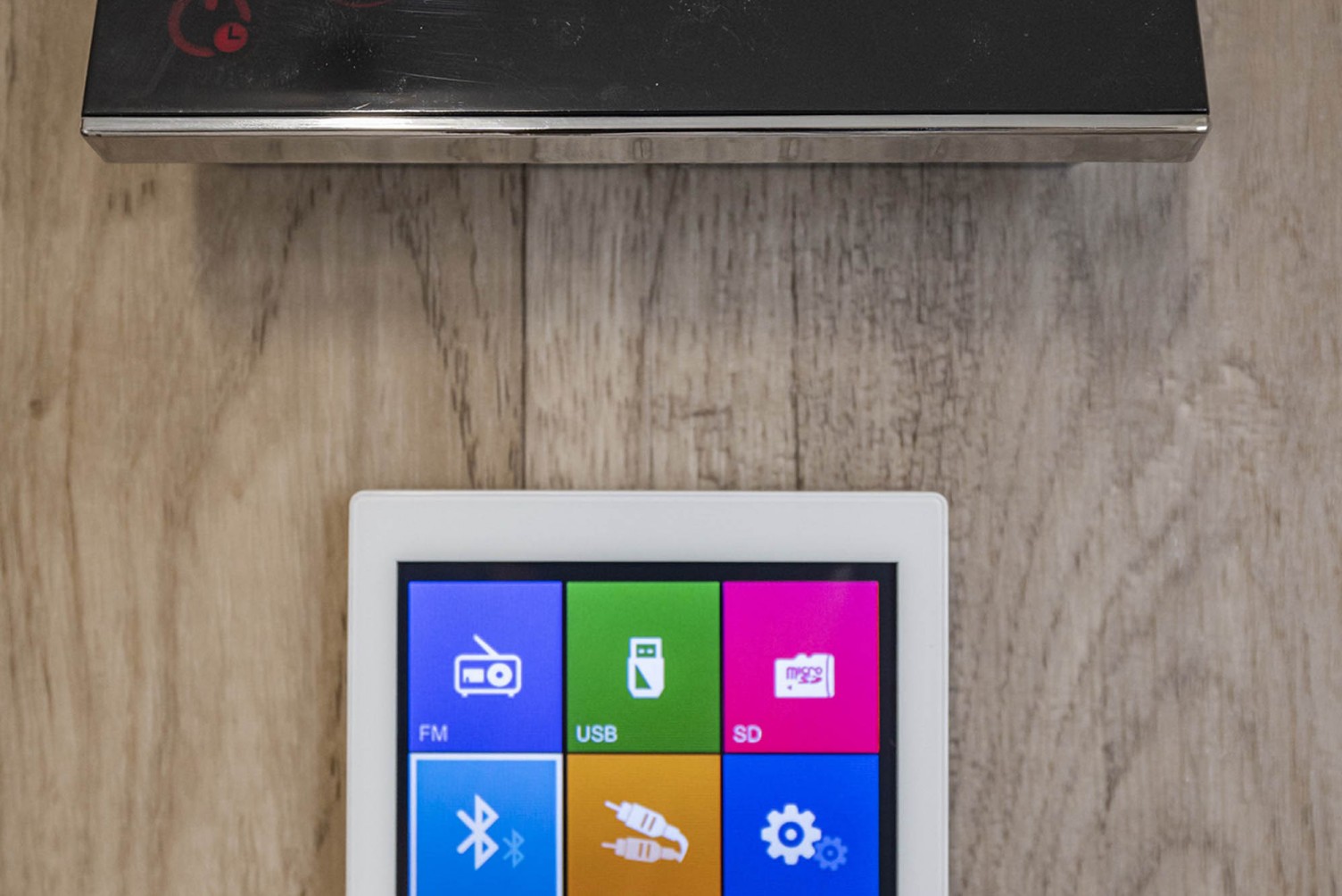 Įmontuotas modernaus dizaino karšto vandens šildytuvas (boileris).