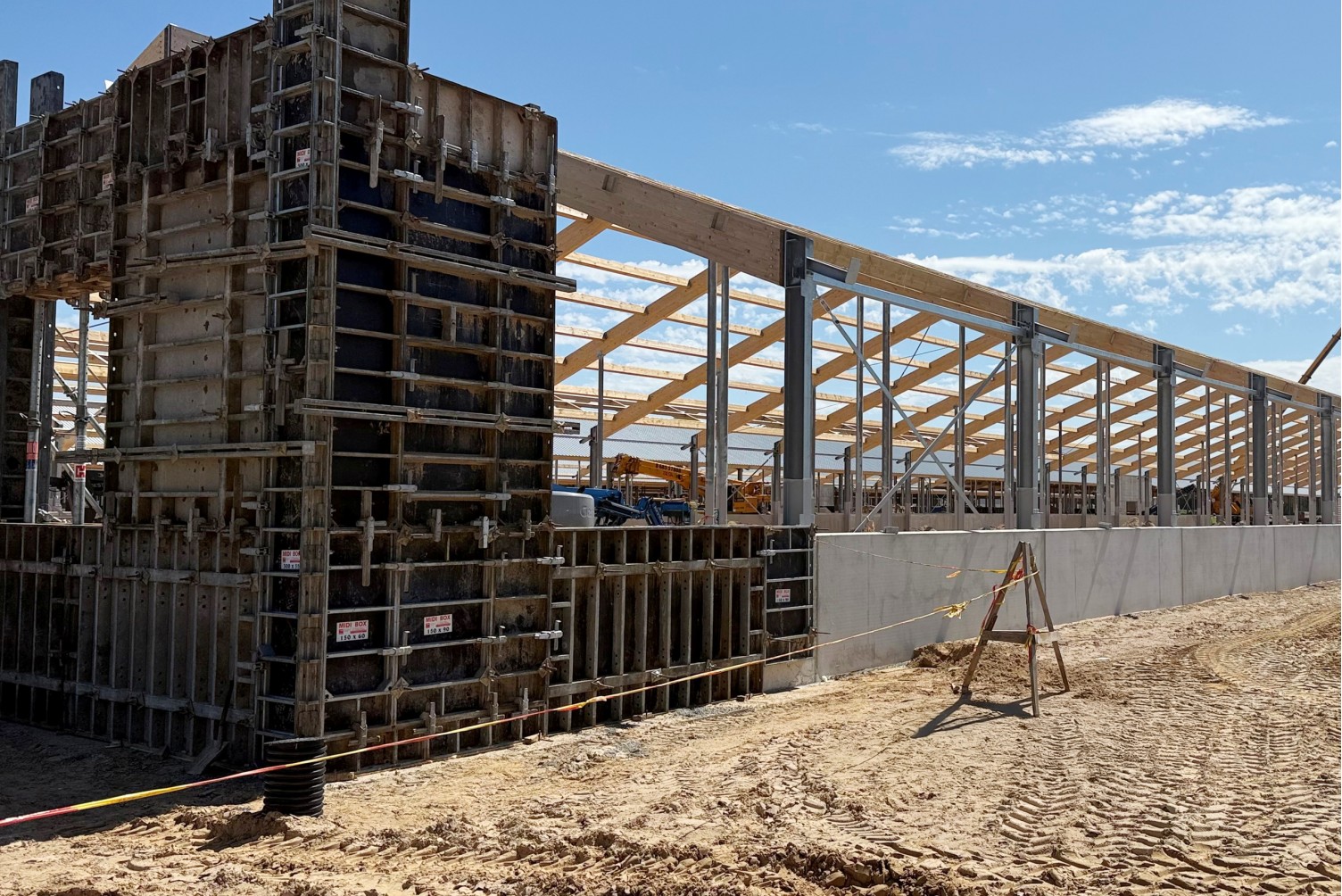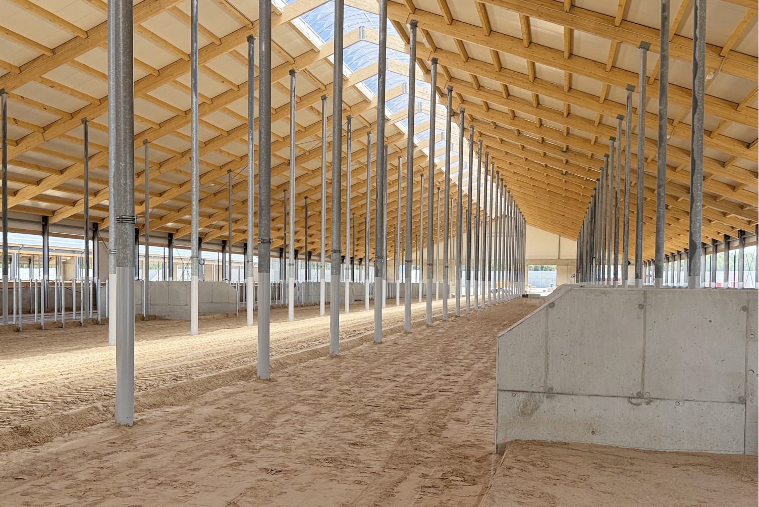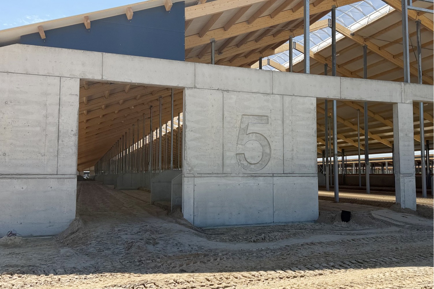 Fermų statyboms suprojektavome ir parinkome vienodo dydžio klojinių skydus, kad šie neišsišoktų kaip atskiri elementai ir sudarytų vientisumo įspūdį. Objekte projektavome klojinius gyvulių ligoninės trisluoksnėms sienoms, kurių vidurys buvo užpildomas šiltinimo sluoksniu iš putplasčio, o iš šonų užliejamas betonas. Taip pat atlikome klojinių projektavimą apvaliam 31 metro skersmens pamatui, kurio sienos storis - 20 cm.