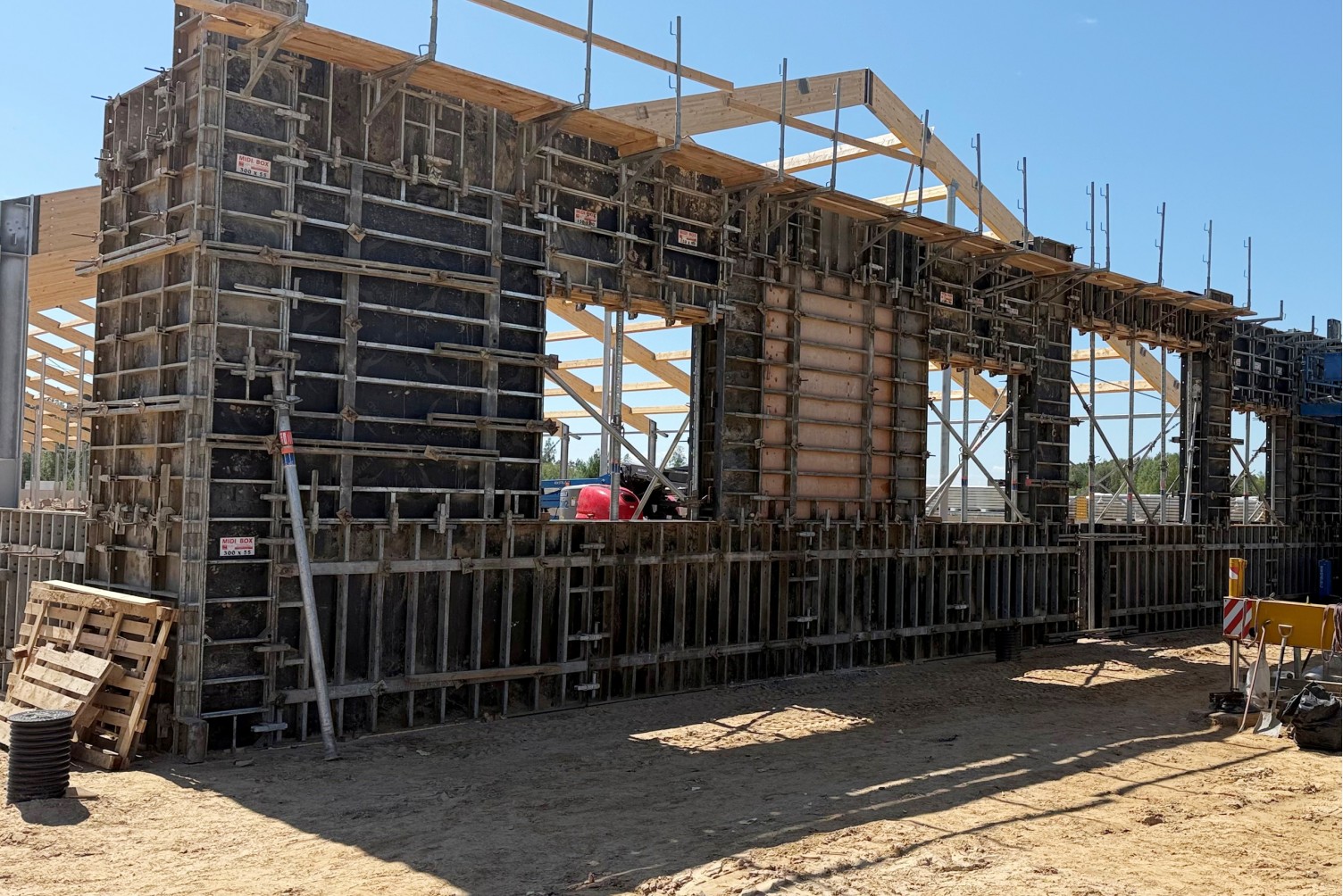 Klientas betonavo 9 fermų sienas, kurios turėjo atrodyti nepriekaištingai. Galinėse pastatų sienose betonavimo metu turėjo būti įtvirtinti numeriai iš kompozitinio plastiko nuo 1 iki 9, kad nuėmus klojinius liktų 3 cm gylio skaičių įspaudai. Taip pat reikėjo suprojektuoti ir paruošti klojinius trisluoksnei gyvulių ligoninės sienai ir karvių melžimo karuselės apvaliam pamatui.