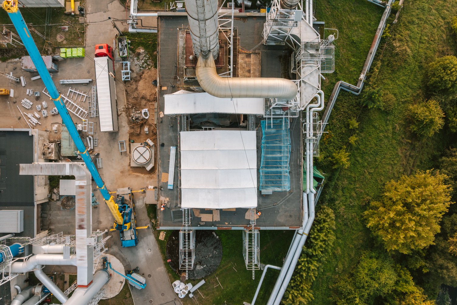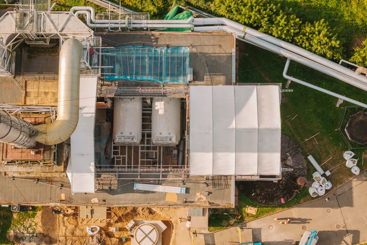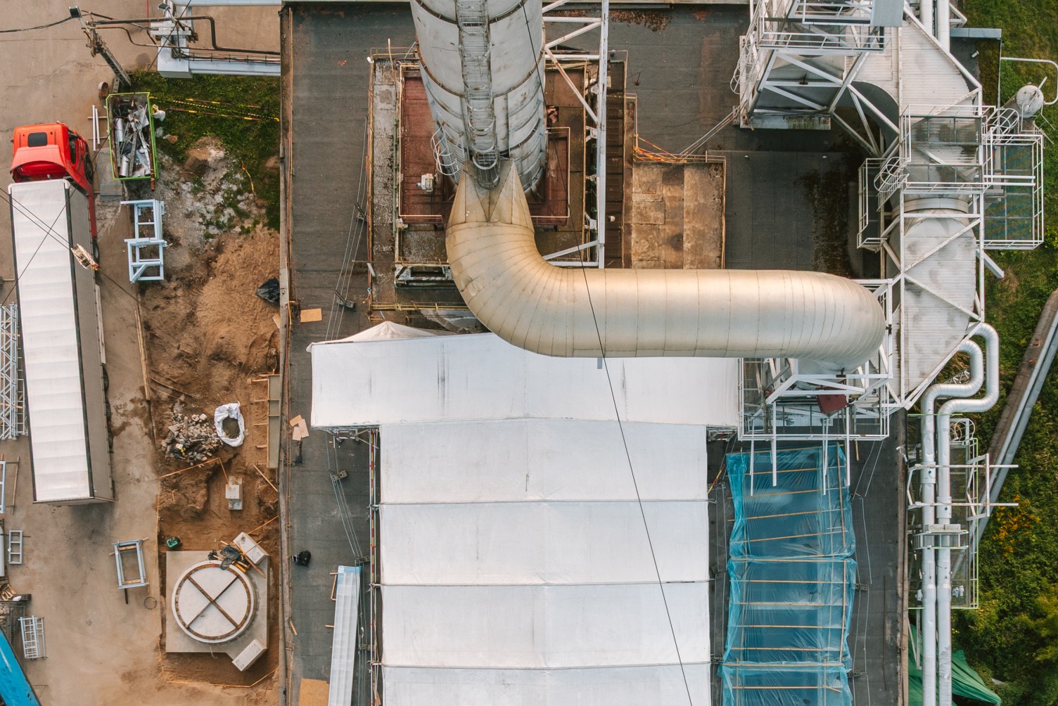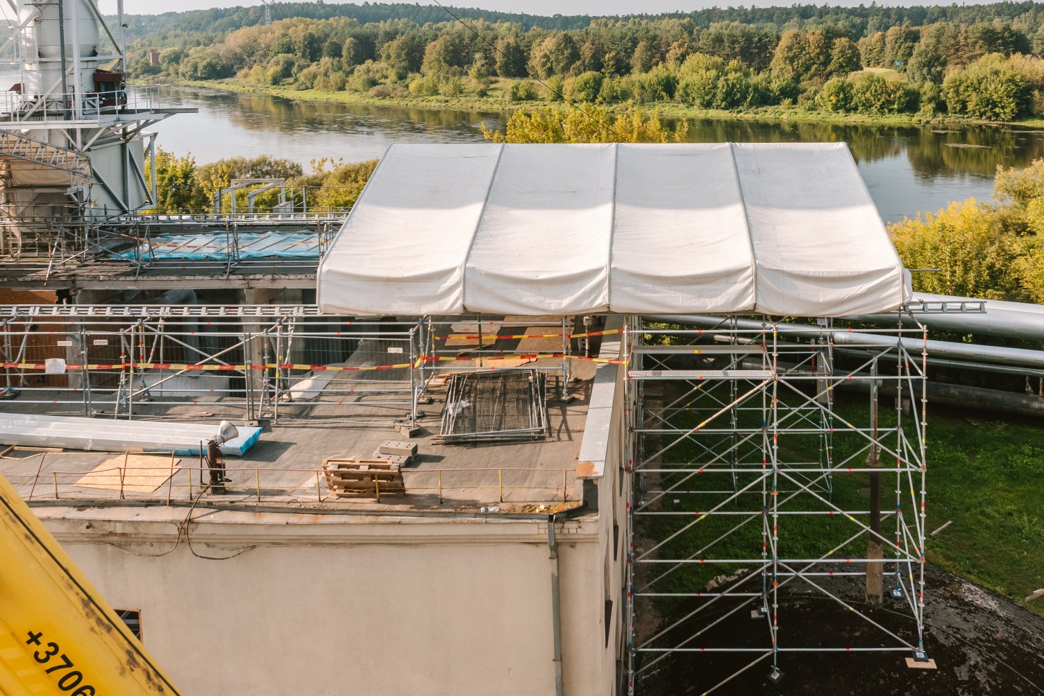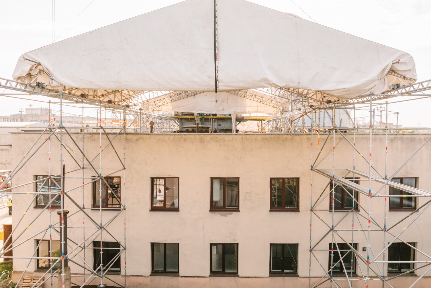 Atliekant remonto darbus elektrinėje, klientas išsakė poreikį panaudoti laikiną stogą. Darbų metu pastato stoge buvo išpjauta atvira kiaurymė, tad reikėjo apsaugoti viduje esančius įrengimus bei dirbančius žmones nuo orų permainų. Tačiau stabilus uždengimas šiuo atveju netiko, nes per stogą reikėjo nuolat įkelti statybines medžiagas ir kitą įrangą. Tarp ribojimų prisidėjo ir nepakankamas pastato stogo plotas, kad būtų galima patogiai ir saugiai statyti laikinus įrengimus.